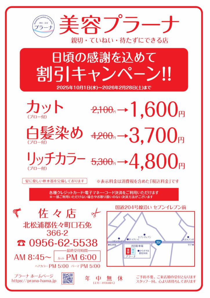 対象店舗: 美容 佐々 限定!!カット 500円割引!!カラー 500円割引!!(白髪染め、リッチカラー)